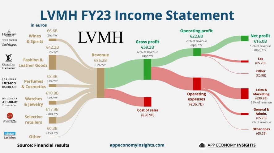 Zestawienie finansowe spółki LVMH za 2023 rok